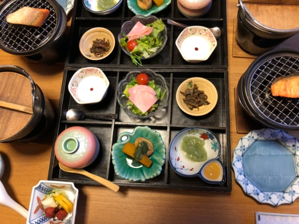 Al igual que la cena, dependiendo del tipo de ryokan, el desayuno puede servirse en sala privada, en habitación o en el comedor, y también suele ser de estilo tradicional.